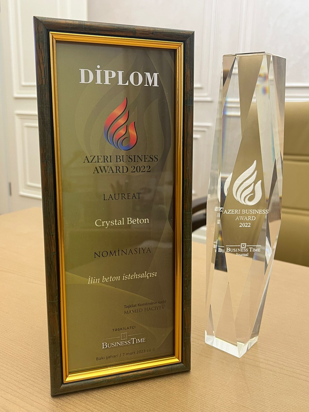 Tədbirdə iştirak edən “Crystal Beton” Qapalı Səhmdar Cəmiyyəti İlin beton istehsalçısı adını qazanıb. Mükafatla təltif edilən şirkətin nümayəndəsi təşkilatçılara verdikləri dəstəyə görə öz təşəkkürünü bildirib və belə bir inam ifadə edib ki, zəngin təcrübəyə malik şirkət qarşıdakı illərdə daha böyük tikinti layihələrinə öz töhfəsini verəcəkdir.