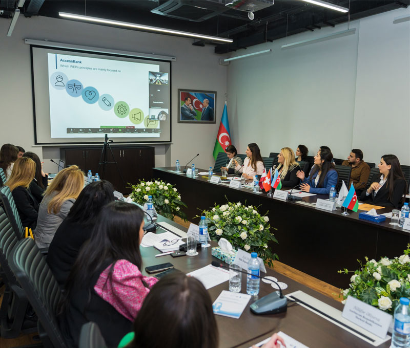 Tədbirdə AccessBank-ın İnsan Resursları üzrə İcraçı direktoru Nigar Hüseynzadə Bankın BMT-in Qadınların Səlahiyyətlərinin Genişləndirilməsi Prinsiplərinə (WEPs) qoşulması və bu prinsiplərin Bankın fəaliyyətinə gətirdiyi yeniliklər barədə təqdimatla çıxış etdi. AccessBank Qadınların Səlahiyyətlərinin Genişləndirilməsi Prinsiplərinin uğurlu tətbiqinə görə Birləşmiş Millətlər Təşkilatının İnkişaf Proqramından (BMTİP) təşəkkürnamə aldı.