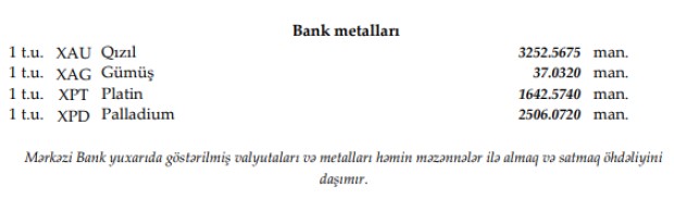 Rəsmi məzənnələr açıqlandı