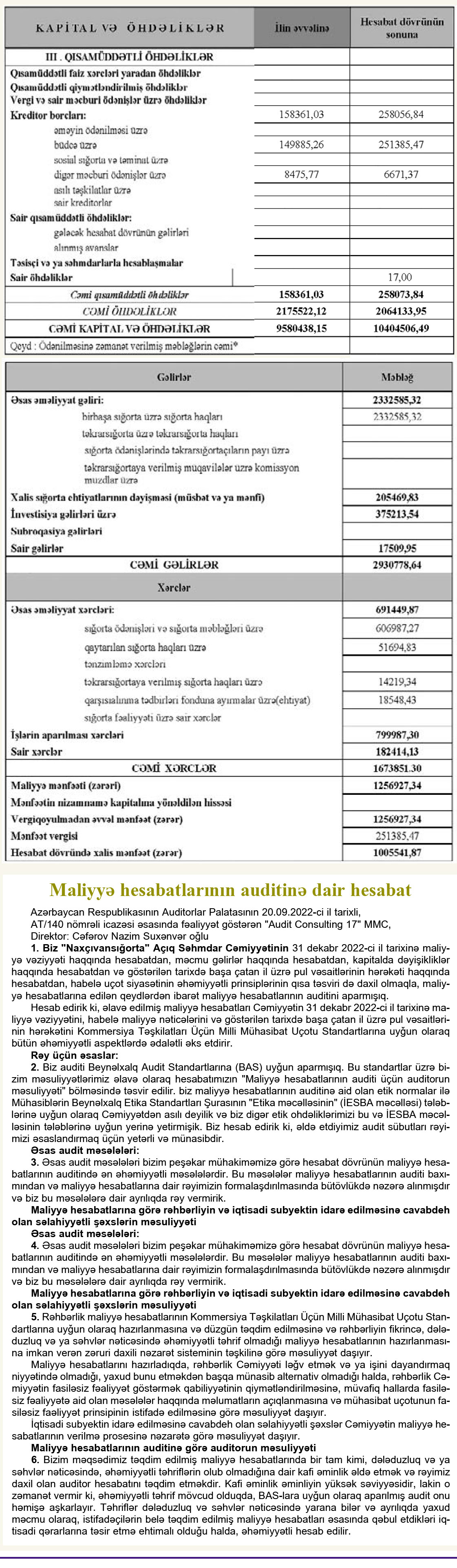 Müqayisə üçün qeyd edək ki, 2021-ci ildə "Naxçıvan Sığorta"nın cəmi əməliyyat gəlirləri 2 milyon 278 min manat, cəmi əməliyyat xərcləri 1 milyon 153 min manat, əməliyyat mənfəəti 1 milyon 125 min manat, ödədiyi mənfəət vergisi 225 min manat təşkil etmişdi. Şirkət 2021-ci ildə 2 milyon 509 min manat sığorta haqları toplamış, 422 min manat sığorta ödənişləri həyata keçirmişdi.