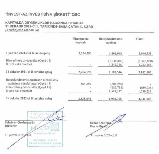 Ötən il "İnvest-AZ"ın nizamnamə kapitalı 584 min 250 manat artırılaraq 2 milyon 838 min 840 manata çatdırılıb.