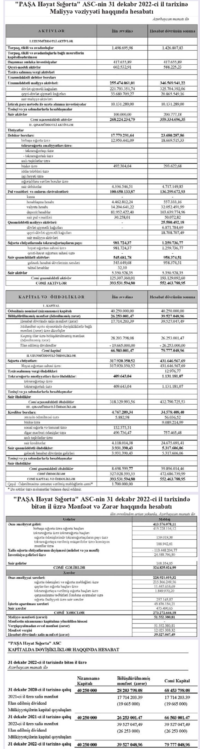“PAŞA Həyat Sığorta” ASC Milli Mühasibat Uçotu Standartları əsasında hazırlanmış hesabatlarını dərc edib.
