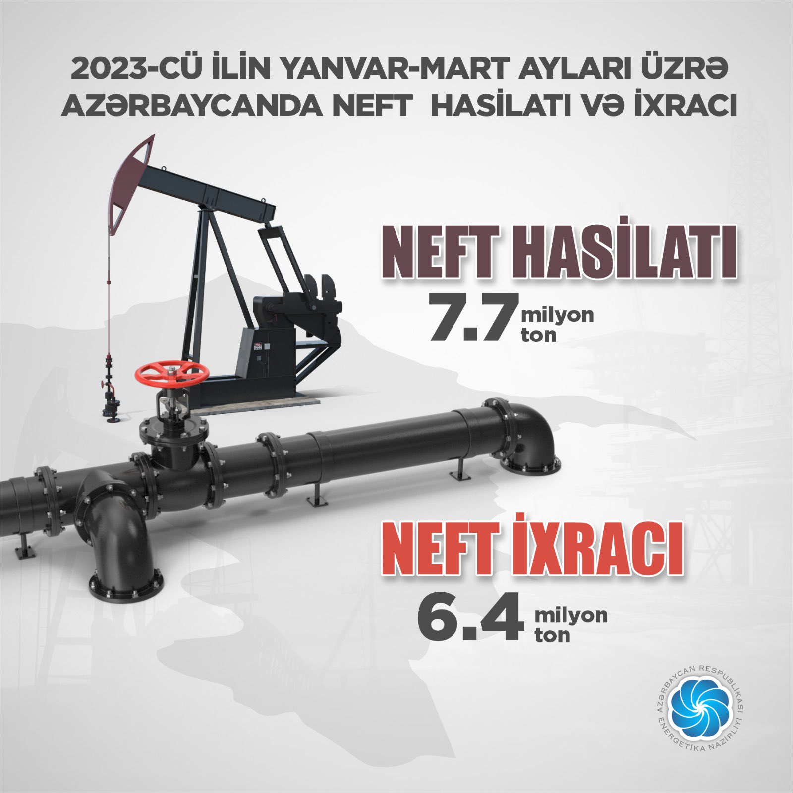 Nazir qeyd edib ki, 2023-cü ilin 1-ci rübündə, operativ məlumatlara əsasən neft-kondensat hasilatı 7.7 milyon ton, ixracı isə 6.4 mln. ton olub.