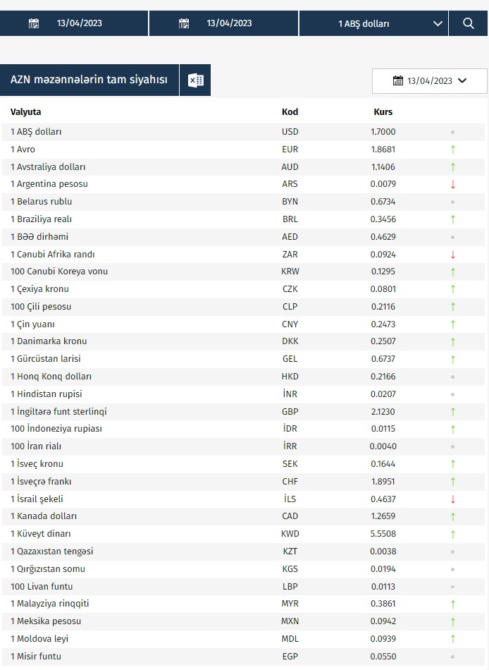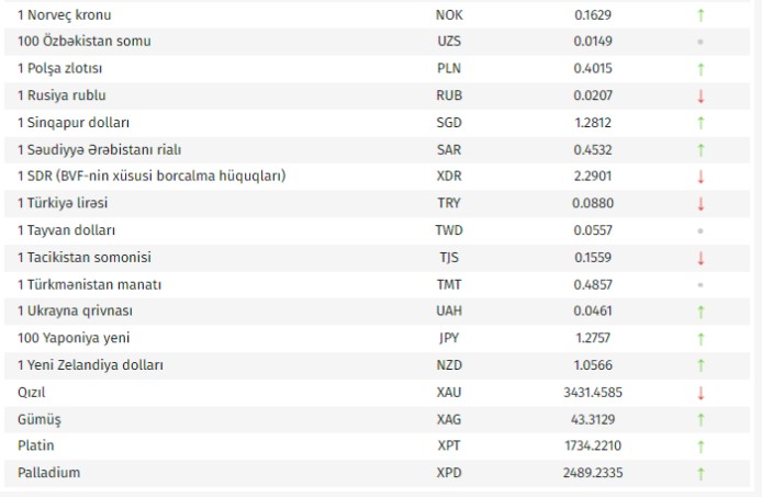 Rəsmi məzənnələr açıqlandı