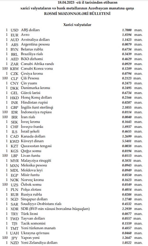 Dolların bazar ertəsi üçün rəsmi məzənnəsi müəyyən olunub