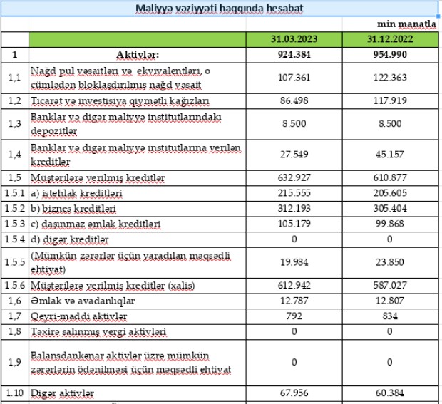 Bnak 2023-ün ilk rübünü mənfəət ilə başa vurub"Rabitəbank" ASC 2023-cü ilin 1-ci rübü (yanvar-mart) üzrə maliyyə göstəricilərini açıqlayıb.