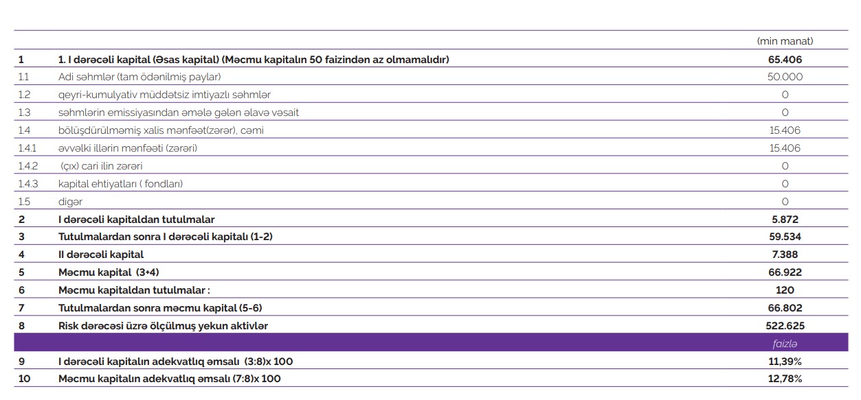 Bankın məcmu kapitalının həcmi 28% artaraq, 66,8 milyon manat olmuşdur.