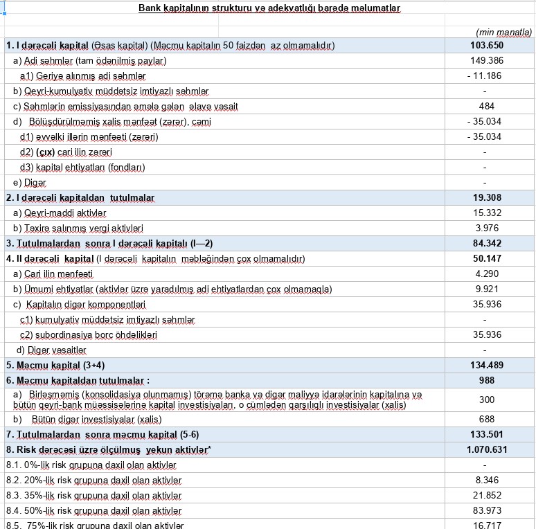 Müqayisə üçün qeyd edək ki, 2022-ci ilin 1-ci rübündə "Unibank"ın cəmi əməliyyat gəlirləri 47 milyon 928 min manat, cəmi əməliyyat xərcləri 46 milyon 42 min manat, əməliyyat mənfəəti 1 milyon 886 min manat təşkil etmişdi. Bank mümkün zərərlər üçün yaradılan məqsədili ehtiyatlara 6 milyon 29 min manat ayırmışdı.