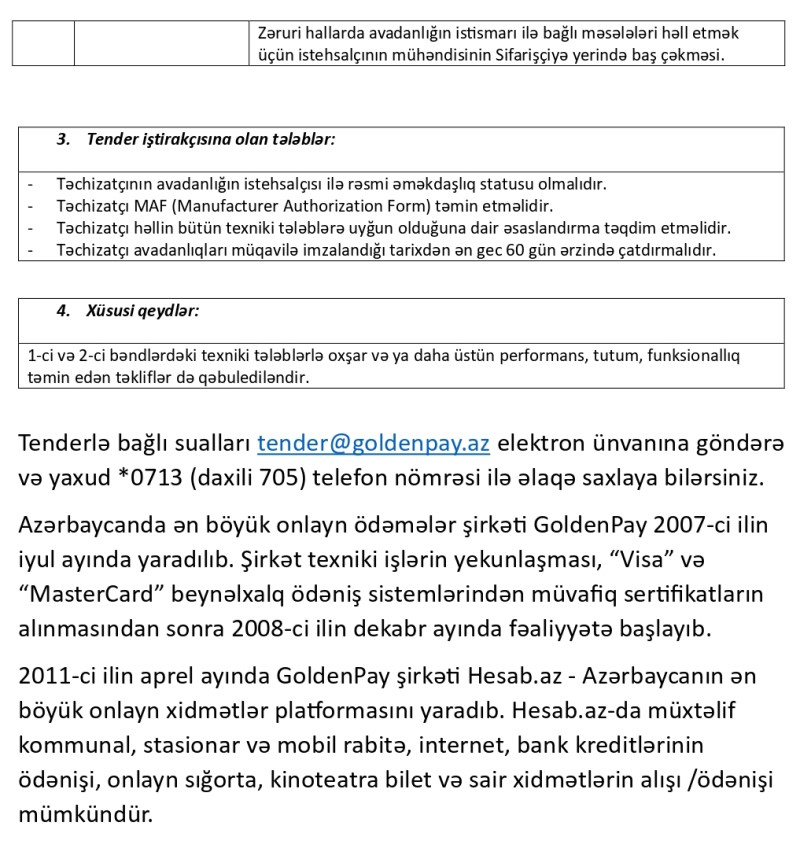 (®) Azərbaycanın ilk və ən böyük onlayn ödəmələr şirkəti – QoldenPey ASC server-storage kompleksinin satın alınması üzrə Tender elan edir.