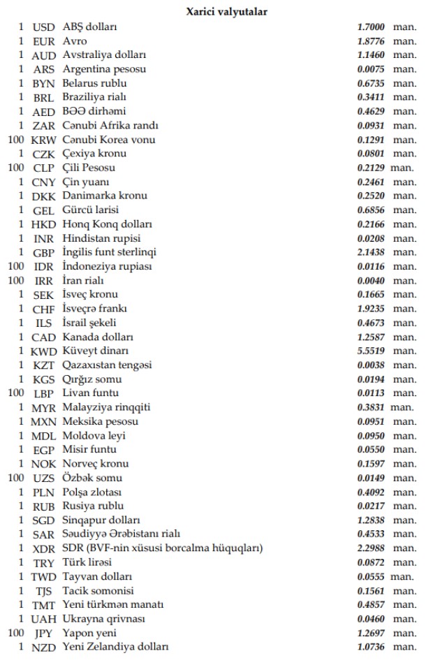 Rəsmi məzənnələr açıqlandı
