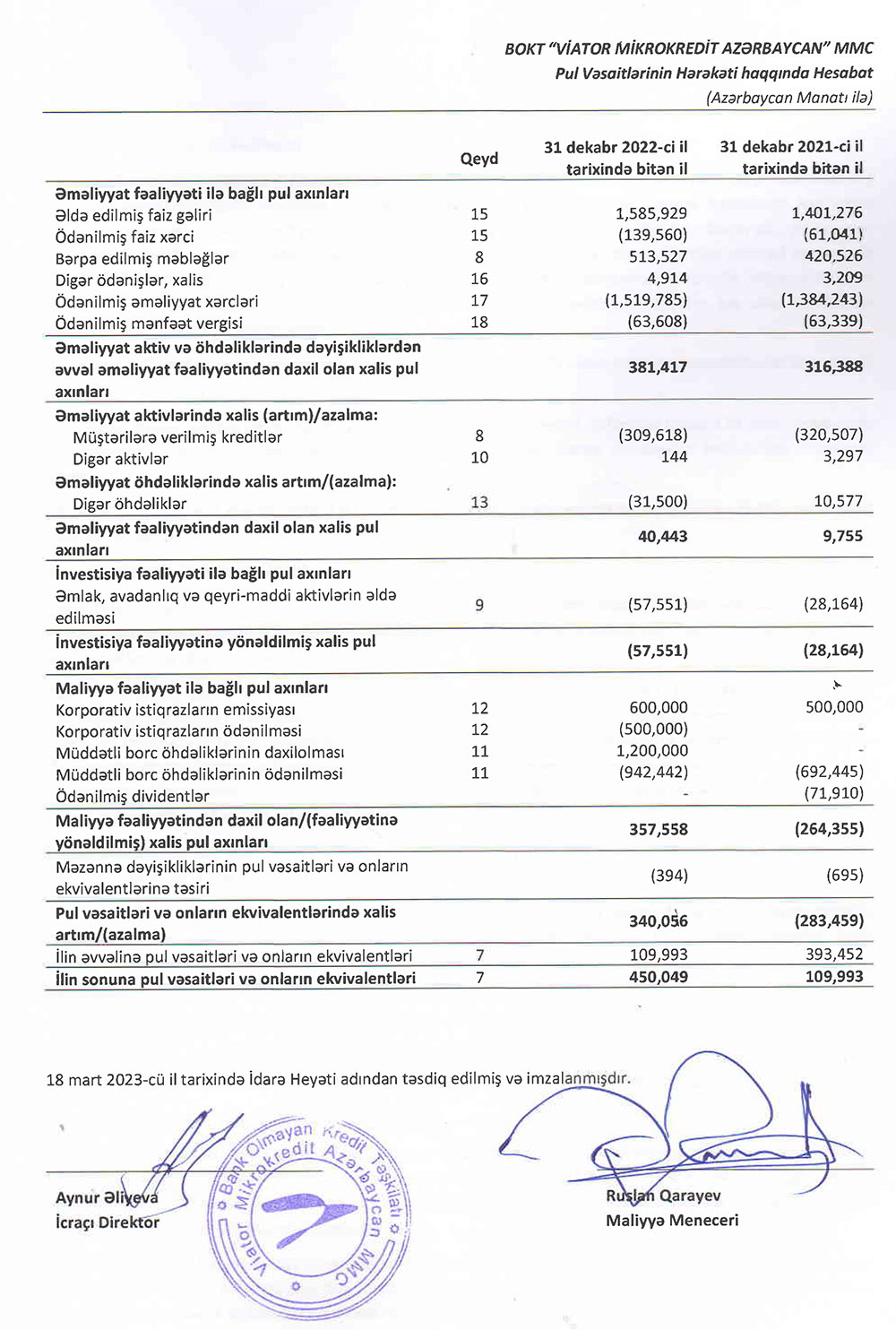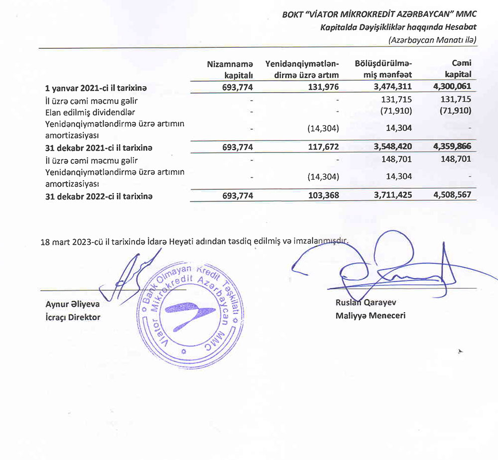 BOKT "Viator Mikrokredit Azərbaycan" MMC-nin 2022 - ci ilin sonuna olan maliyyə və audit hesabatıBank Olmayan Kredit Təşkilatı "Viator Mikrokredit Azərbaycan" MMC 2022-ci ili 148 min 701 manat xalis mənfəət ilə başa vurub. Təşkilat 2021-ci ili 131 min 715 manat xalis mənfəət ilə bağlamışdı.