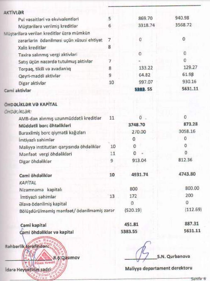 “Finex Kredit” BOKT-ın cəmi aktivləri 2021-ci ilin sonunda 5 milyon 631 min manat ikən, 2022-ci ilin sonunda 5 milyon 384 min manata geriləyib.