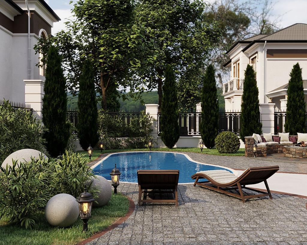 Hər bir villa layihəsinə 5,5-7 sot torpaq sahəsi, ən azı 2 avtomobil üçün dayanacaq yeri, yaşıllıq zonası (ağaclar, qazon), açıq havada ocaq güşəsi, söhbətgah, yay mətbəxi, manqal, hovuz ( 4x8 m.), həyət üçün s/q, geyinib-soyunma otağı, duş-kabin və əlavə tikili anbar daxildir. Bu ərazilər tam hazır vəziyyətdə, dizaynlarda təqdim etdiyimiz kimi təhvil veriləcəkdir. Villanın daxili sahəsi təmirsiz şəkildə, lakin ağıllı ev sisteminin şirkətimiz tərəfindən qurulması ilə təhvil verilir.
