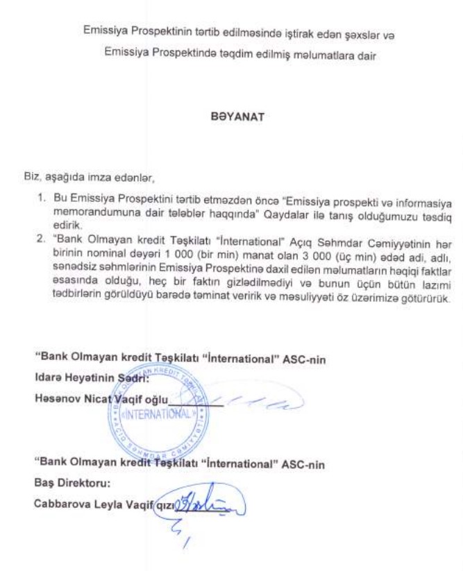 Bank Olmayan kredit Təşkilatı “İnternational” Açıq Səhmdar Cəmiyyətinin nizamnamə kapitalı 3 milyon manat artırılır.