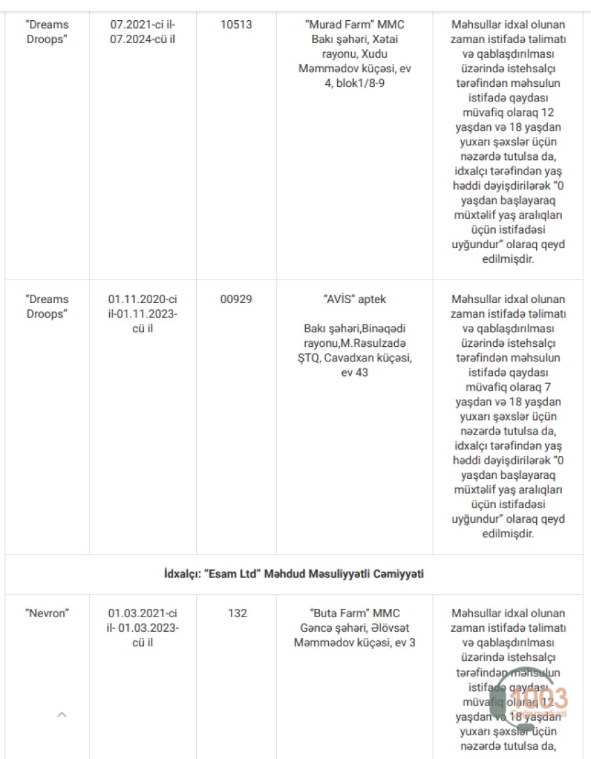 Faktlarla əlaqədar müvafiq tədbirlər görülüb, eləcə də məhsulların dövriyyəsinin dayandırılması və satış obyektlərindən geri çağrılması ilə bağlı qərarlar qəbul edilib.