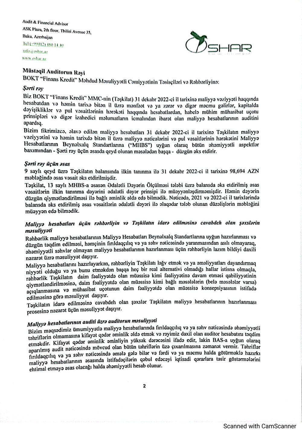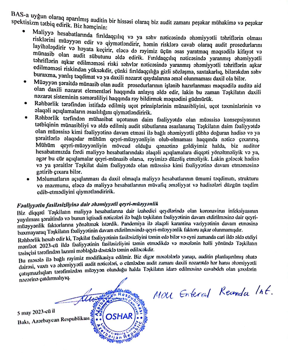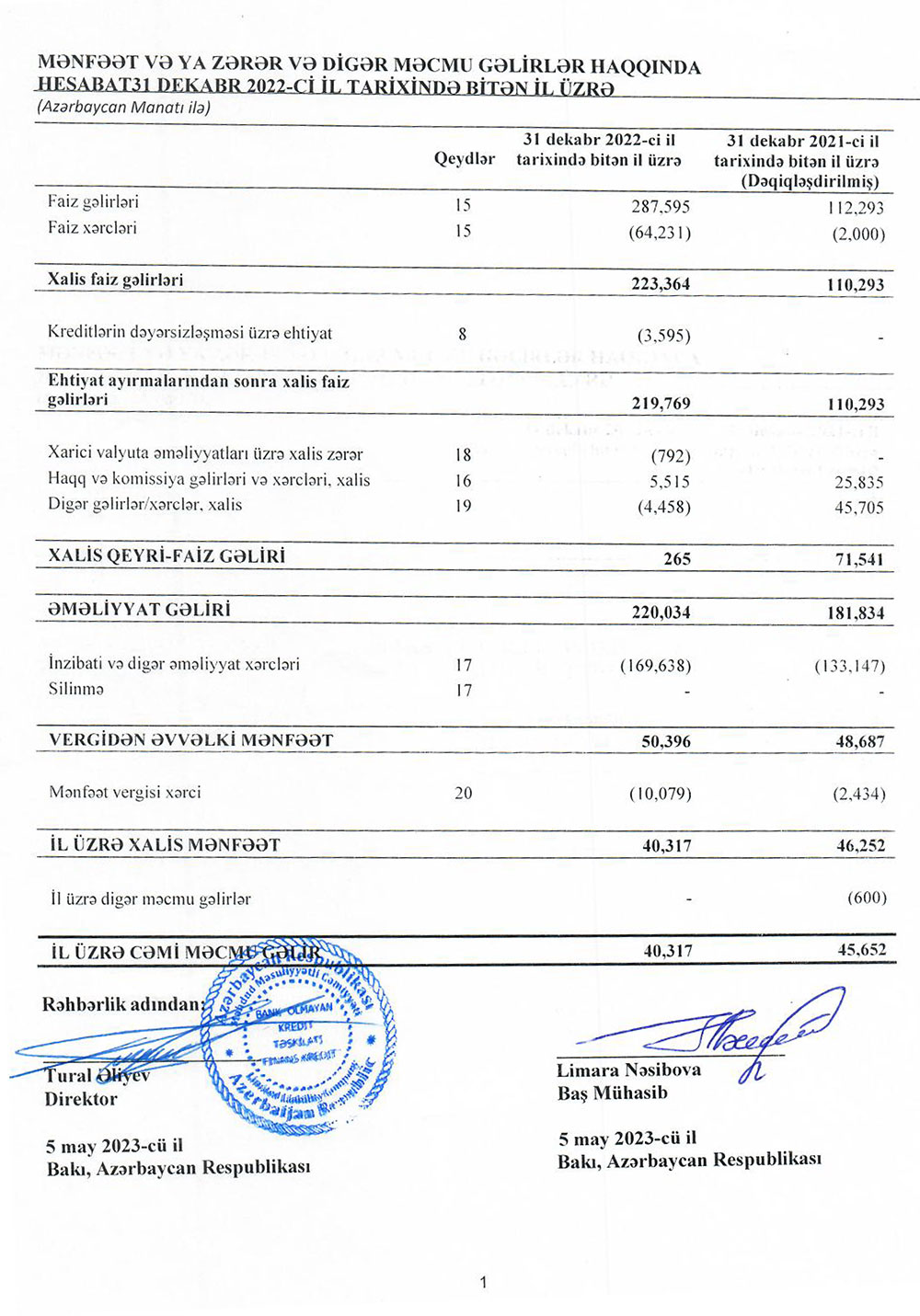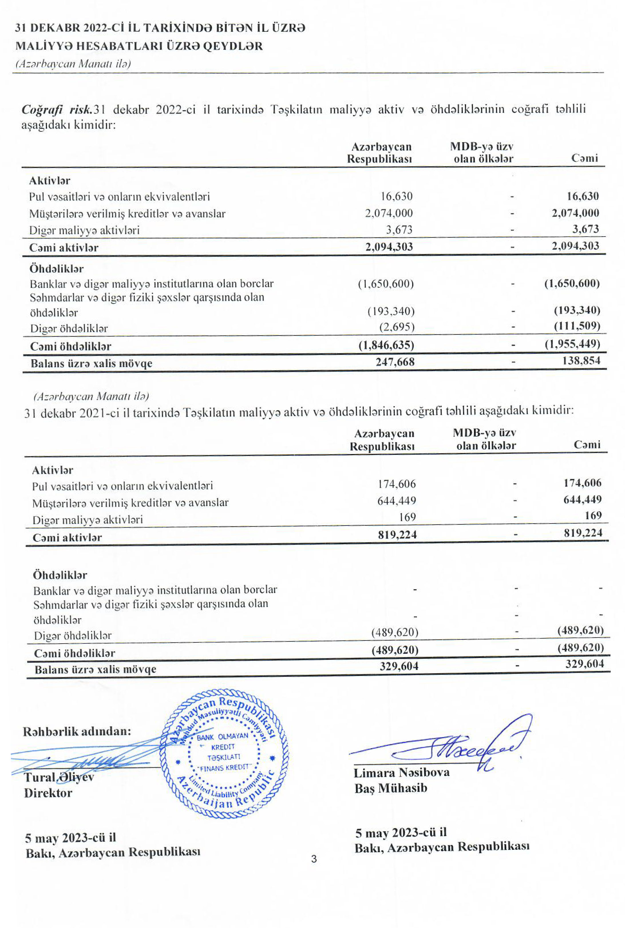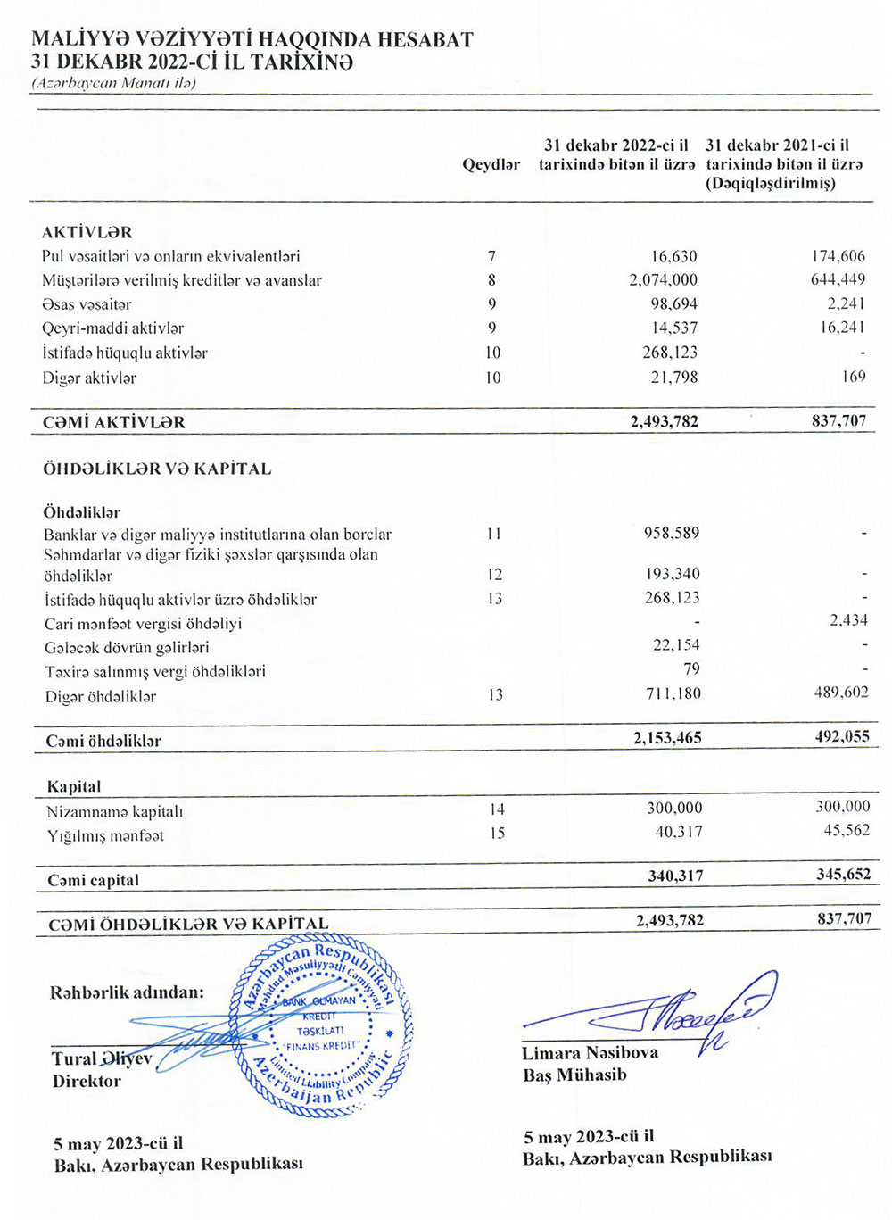 Bank Olmayan Kredit Təşkilatı “Finans Kredit” MMC 31 Dekabr 2022-ci il tarixinə olan maliyyə göstəricilərini açıqlayıb.