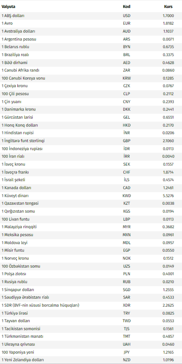 Rəsmi məzənnələr açıqlandı