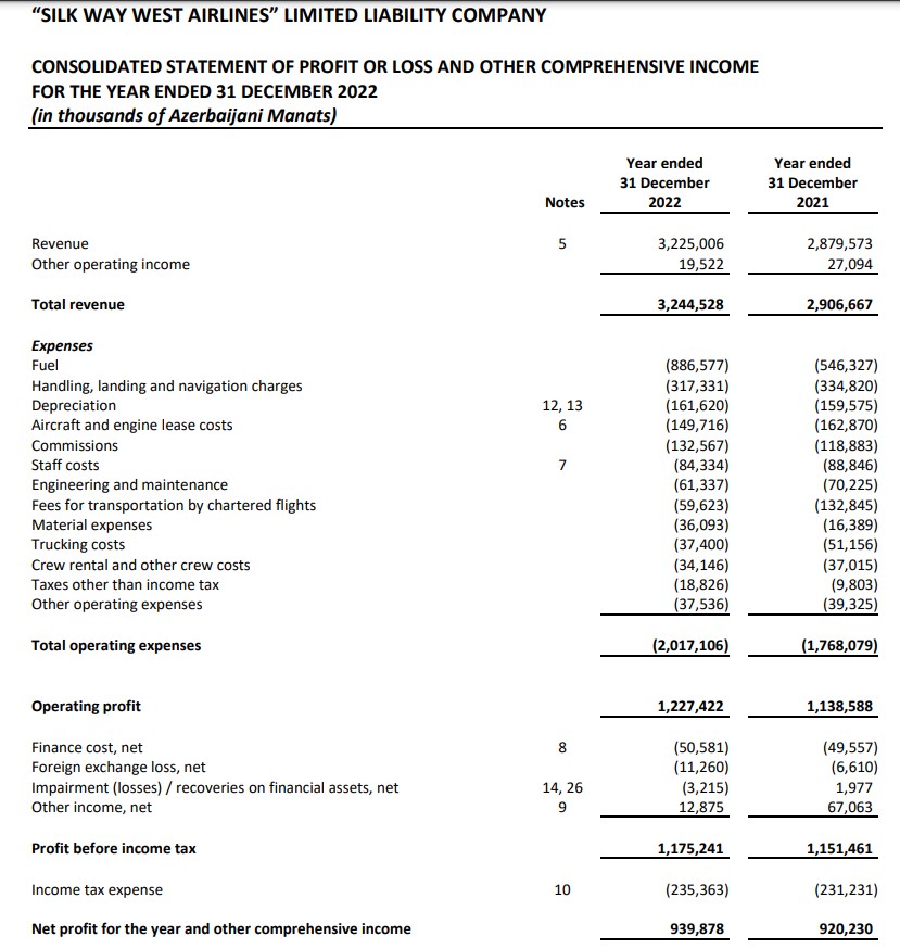 Kommersiya hava daşımalarını yerinə yetirən "Silk Vey Vest Aviaşirkəti" MMC 2022-ci ili 939 milyon 878 min manat xalis mənfəət ilə başa vurub. Şirkət 2021-ci ili 920 milyon 230 min manat xalis mənfəət ilə bağlamışdı. Beləliklə, ötən il "Silk Vey Vest Aviaşirkəti"inin xalis mənfəəti 19 milyon 648 min manat daha çox olub.
