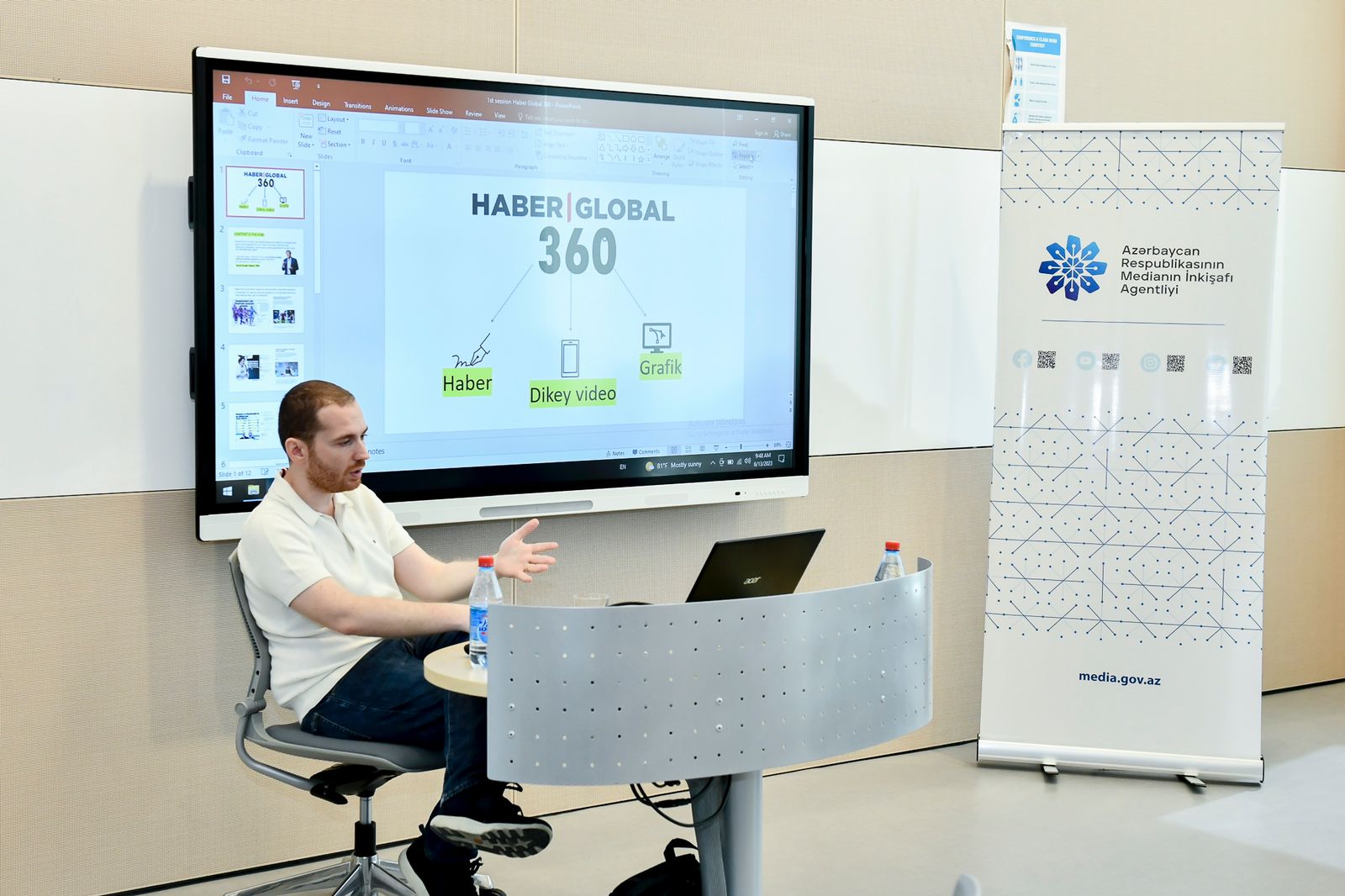 13-14 iyun tarixlərində keçiriləcək təlim proqramı çərçivəsində “Haber Global”ın mütəxəssisi Can Mumay multimedia vasitələrindən istifadə edərək jurnalistika fəaliyyəti ilə məşğul olma, müasir mediada məzmunun daha interaktiv formada təqdim olunması imkanları, şəkillər, videolar, infoqrafika və səs effektləri kimi bir çox elementləri bir araya gətirərək xəbərlərin təsvir edilməsinə dair öz təcrübəsini bölüşəcək. Proqram çərçivəsində iştirakçılara məqalə mətnlərinin ilkin versiyaları, daha sonra videomətn versiyaları, o cümlədən hər bir xəbər mətninin ümumiləşdirilərək “Twitter”də təqdimat formaları nümayiş etdiriləcək. Məqsəd təlimin sonunda auditoriyada 360 dərəcə məzmun dizaynı haqqında məlumatlılığı artırmaqdır. Qeyd edək ki, təlim proqramının yekununda iştirakçılara sertifikatlar təqdim olunacaq.