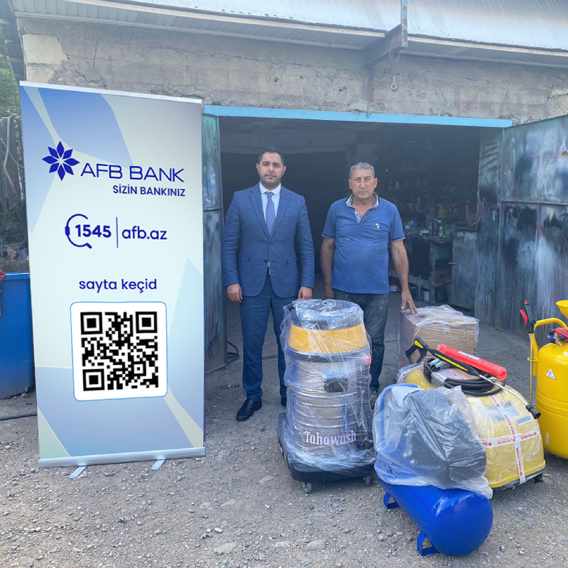 2023-cü ilin əvvəlində “AFB Bank” tərəfindən 4 vətəndaşımıza “Avtotəmizləmə xidməti” biznesini qurmaq və inkişaf etdirmək üçün xüsusi avadanlıqlar təqdim olunub. Onlardan 2 nəfəri II Qarabağ müharibəsinin iştirakçıları Elnur Məmmədov və Gündüz Rəcəbov, digər 2 vətəndaşımız isə həssas əhali qrupundan Elvin Məmmədov və Natiq Verdiyevdir.