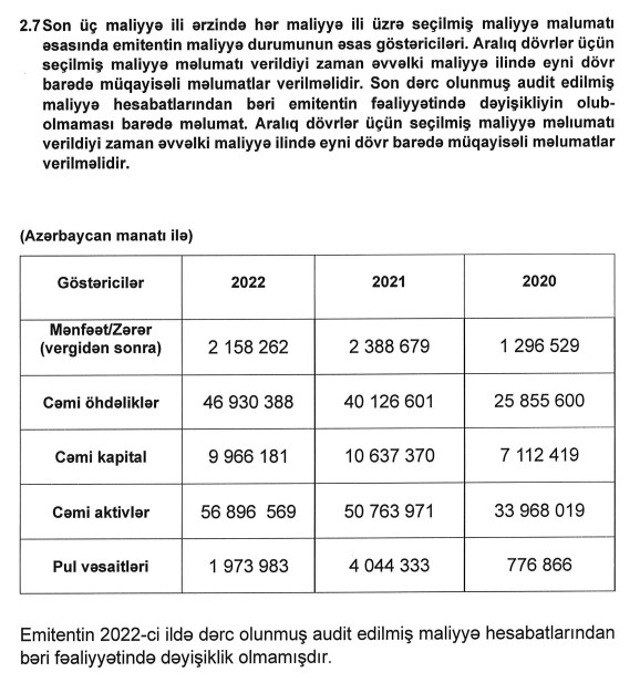 2022-ci ildə də "Ferrum Kapital" illik 11.5 %% gəlirliliyi olan 5 milyon manatlıq istiqrazları yerləşdirmişdi.