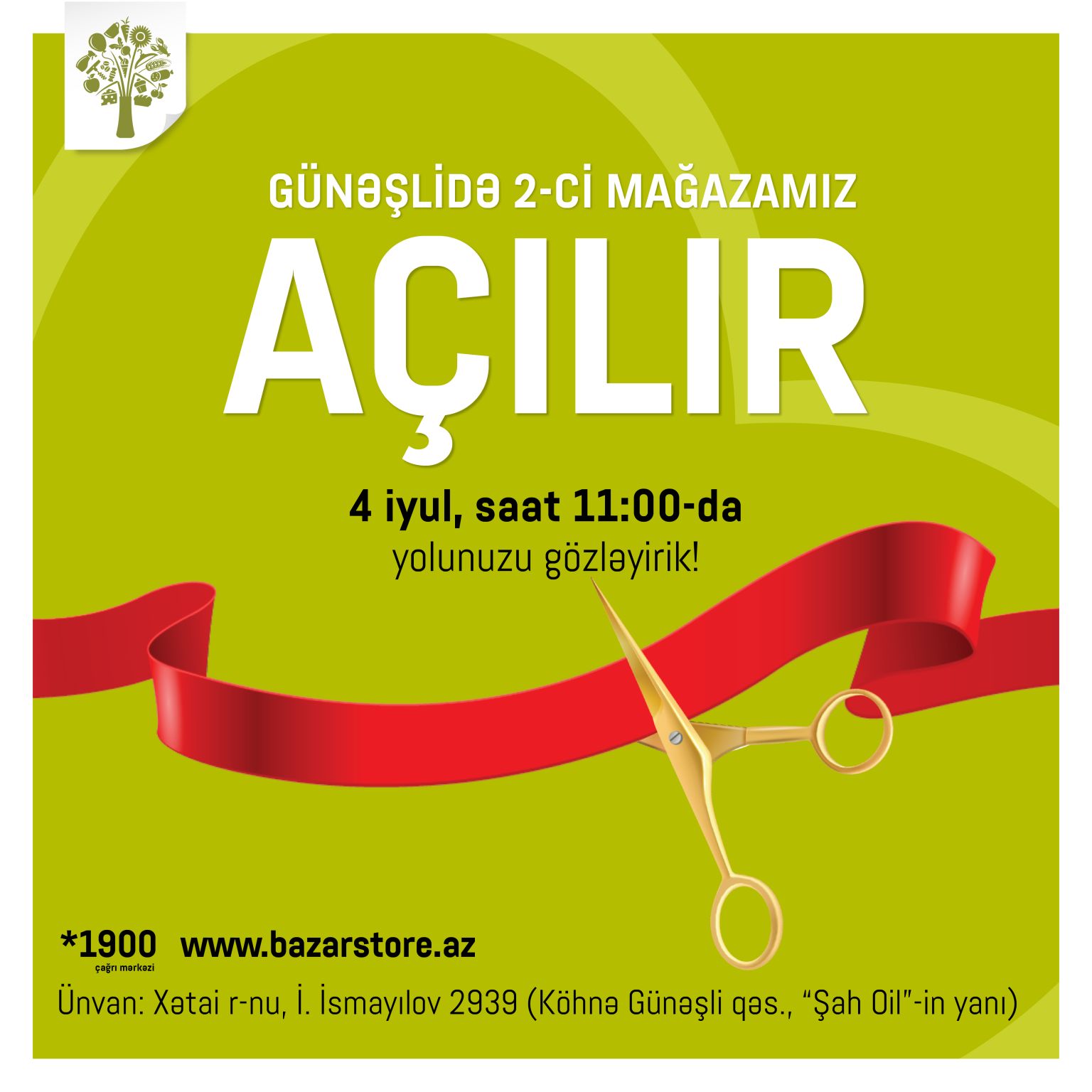 Günəşlidə 2-ci filialın açılması ilə “Bazarstore” mağazalarının ölkə üzrə sayı 88-ə çatacaq.
