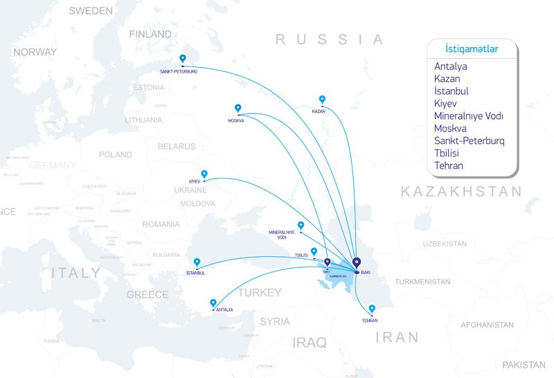 Qeyd edək ki, aviaşirkət sentyabrın 1-dən Bakıdan Moskva ("Vnukovo" hava limanı), Kiyev (“Julyanı” hava limanı), Antalya, Kazan, Mineralnıye Vodı, Tbilisi və Tehrana uçuşlar yerinə yetirəcək.