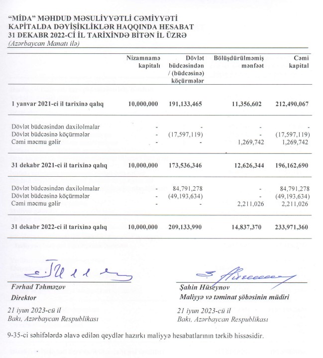 Azərbaycan Respublikası Mənzil İnşaatı Dövlət Agentliyinin tabeliyində olan "MİDA" MMC 2022-ci ili 2 milyon 211 min manat xalis mənfəət ilə başa vurub. Şirkət 2021-ci ili 1 milyon 270 min manat xalis mənfəət ilə bağlamışdı. Beləliklə, ötən il "MİDA" MMC-nin xalis mənfəəti 941 min manat və ya 74% artıb.