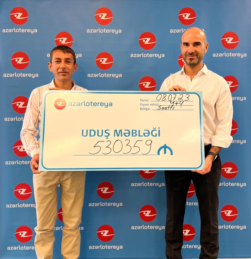 Qeyd edilib ki, 43 yaşlı Sakin Hüseynov ustadır. Ara-sıra lotereyada bəxtini yoxlayan Sakin bəyə qonaq getdiyi Saatlıda şans üzünə gülüb. “4+4” lotereyasında 530 359 manatlıq cekpotun sahibi olub.