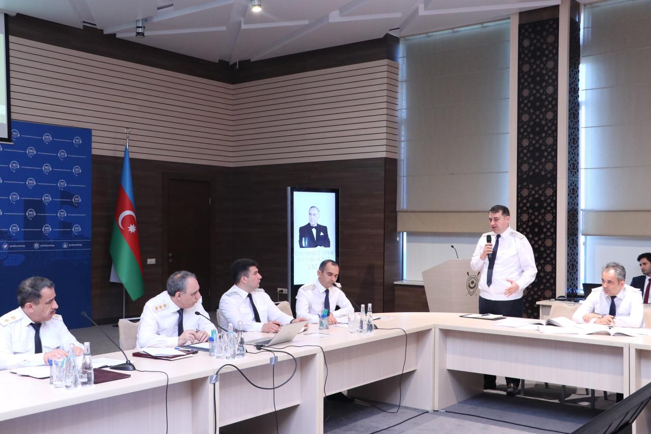 Müşavirədə hesabat məruzəsi ilə çıxış edən Baş prokurorun müavini - Baş prokuror yanında Korrupsiyaya qarşı Mübarizə Baş İdarəsinin rəisi Nazim Rəcəbov Baş İdarədə baxılmış müraciətlər, cinayət xarakterli məlumatlar, həyata keçirilmiş əməliyyat və qabaqlayıcı tədbirlər, onların müsbət nəticələri və digər əhəmiyyətli məlumatları müqayisəli şəkildə təhlil etməklə müşavirə iştirakçılarının diqqətinə çatdırmışdır.