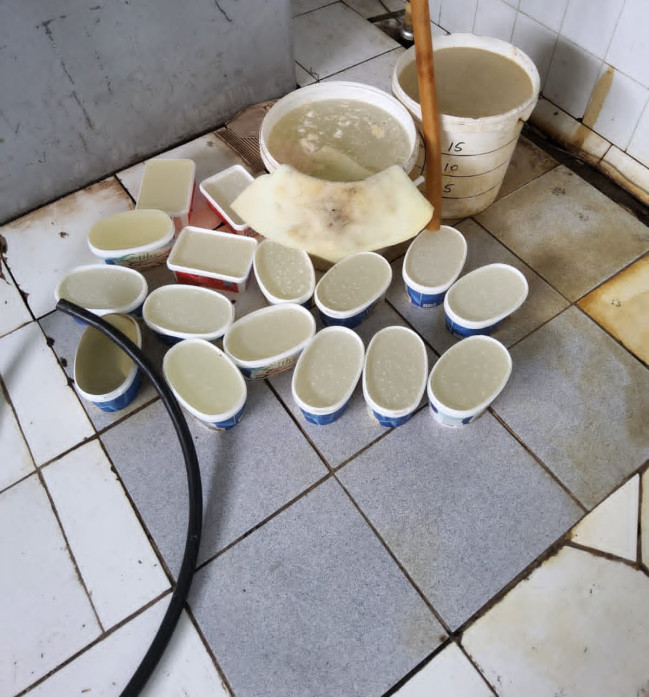 Belə ki, müəssisədə sanitar texniki və sanitar gigiyenik vəziyyətin qənaətbəxş olmadığı, havalandırma sisteminin quraşdırılmadığı, tavan, döşəmə və divar səthlərinin asan təmizlənmənin və dezinfeksiya vasitələrinin təsirinə davamlı materiallarla üzlənmədiyi, texnoloji ardıcıllığa və temperatur rejiminə əməl edilmədiyi, xammalların və inqrediyentlərin çirklənmədən mühafizə ediləcək şəraitdə saxlanılmadığı, müvafiq təmizlik işlərinin aparılmadığı, işçi heyətin xüsusi geyimlə tam təmin edilmədiyi, həmçinin ilkin və dövri tibbi müayinədən keçmədiyi məlum olub.