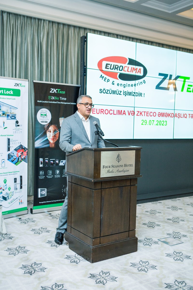 Tədbirdə çıxış edən “ZKTeco” şirkətinin rəsmisi Boris Yanqın sözlərinə görə, sözügedən brend Çində biomretrik texnologiyalar üzrə aparıcı şirkətdir və "Euroclima" ilə əməkdaşlıq müqaviləsi onlar üçün böyük qürurdur.