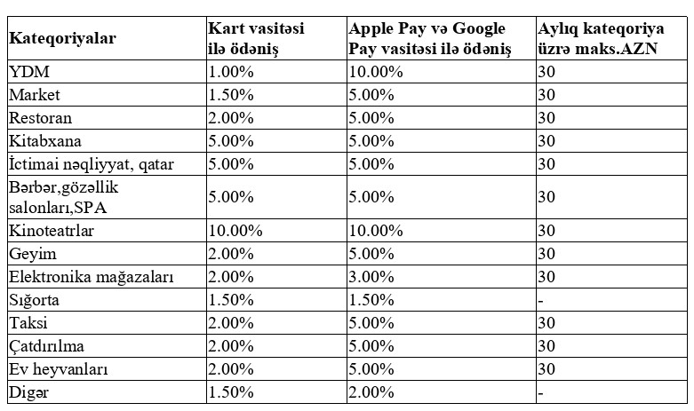Artıq keşbek kateqoriyalar ləğv olunur və bütün keşbeklər cəmi bir Yaşıl keşbekdə birləşir: