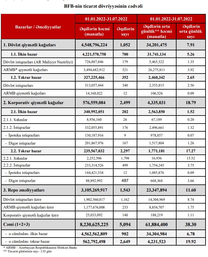 2023-cü ilin 7 ayı ərzində (yanvar-iyul) Azərbaycan Maliyyə Nazirliyi dövlət istiqrazlarının yerləşdirilməsi yolu ilə yerli investorlardan 1 milyard 265 milyon 91 min manat cəlb edib.