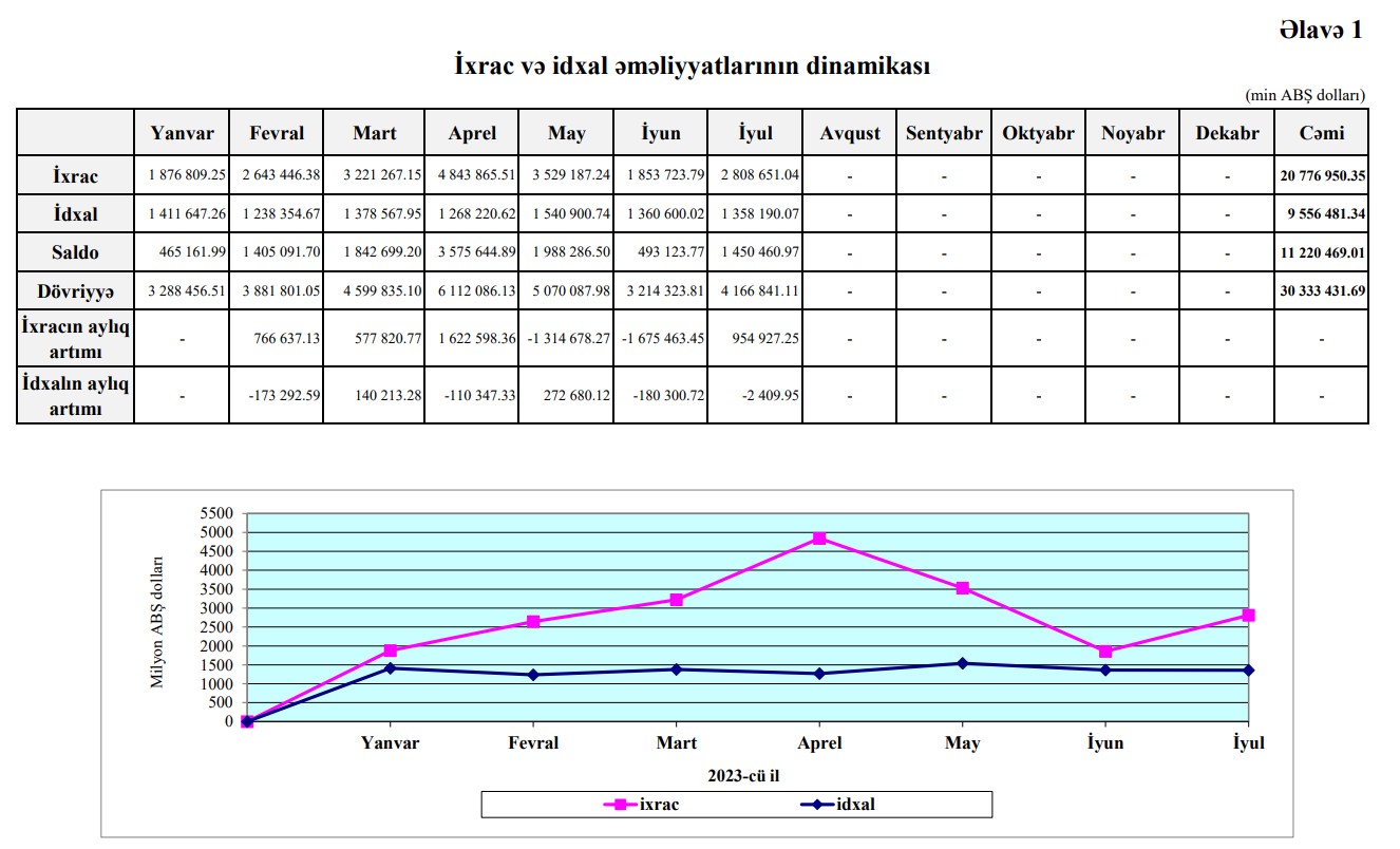 İxrac idxalı üstələdiyindən 11 milyard 220 milyon 469 min dollarlıq müsbət saldo yaranıb.