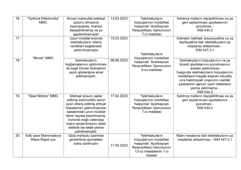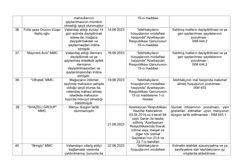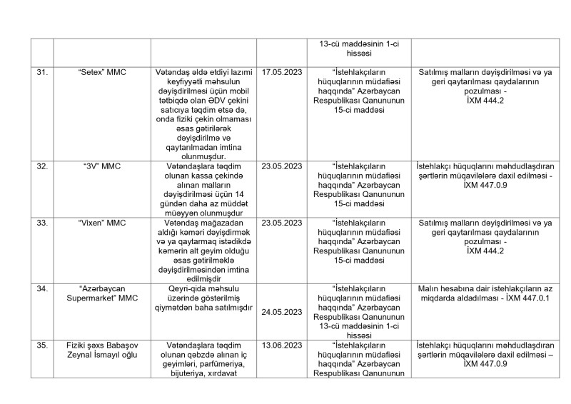 Alıcıları aldatdığı, malları dəyişdirmədiyi və qaytarmadığı iddia olunan şirkətlərin adları açıqlandı - SİYAHI