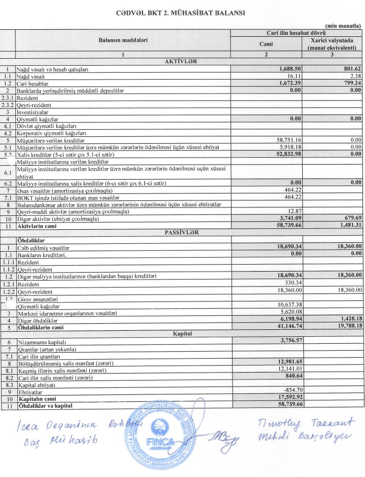 Əhalinin və biznesin "Finca Azerbaijan"a borcu artıb."Finca Azerbaijan" Qeyri-Bank Kredit Təşkilatı 2023-cü ilin birinci yarısını (yanvar-iyun) 840 min manat xalis mənfəət ilə başa vurub. Xatırladaq ki, Təşkilat 2022-ci ili 3 milyon 267 min manat, 2021-ci ili isə 2 milyon 611 min manat xalis mənfəət ilə bağlamışdı.