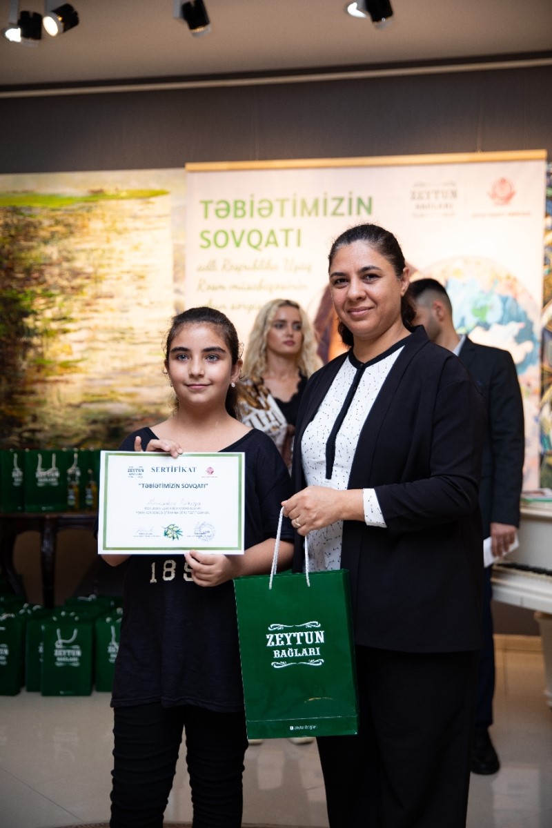 Həmçinin sərgidən seçilmiş 30 ən yaxşı rəsmin müəllifi xüsusi hədiyyə ilə mükafatlandırılarılıb və həmin əsərlər “Zeytun Bağları” brendinin gələcəkdə keçirilən oxşar sosial layihələrdə istifadə olunacaq.