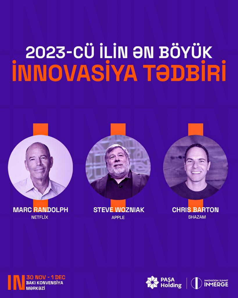 (®) 30 noyabr və 1 dekabr tarixlərində keçiriləcək “InMerge İnnovasiya Sammiti”ndə “Apple” şirkətinin qurucularından Steve Wozniak ilə yanaşı, “Netflix” platformasının həmtəsisçisi Marc Randolph da iştirak edəcək.