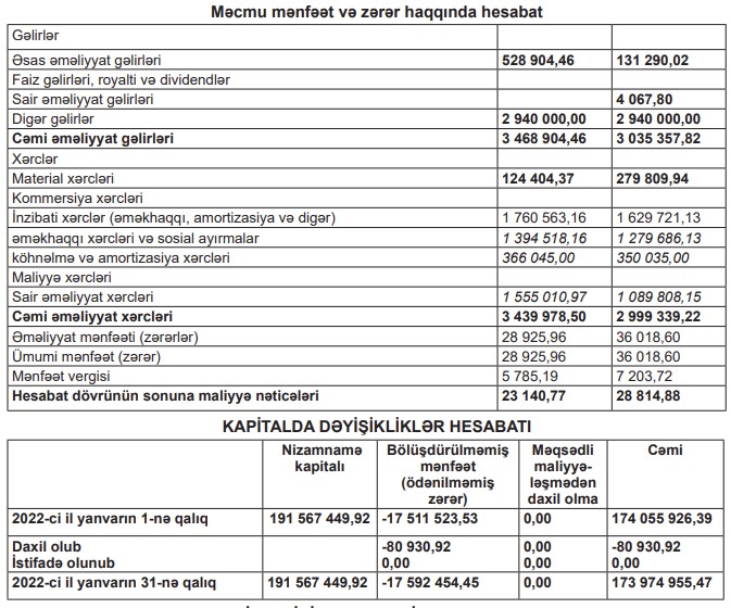 Şirkətin cəmi əməliyyat xərcləri isə 2 milyon 998 min manatdan 3 milyon 440 min manata yüksəlib.