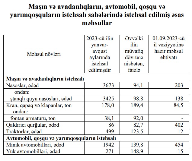 Dövr ərzində əvvəlki ilin müvafiq dövrü ilə müqayisədə traktorların istehsalı 23,5 faiz artaraq 499 ədəd təşkil edib.