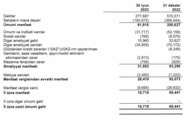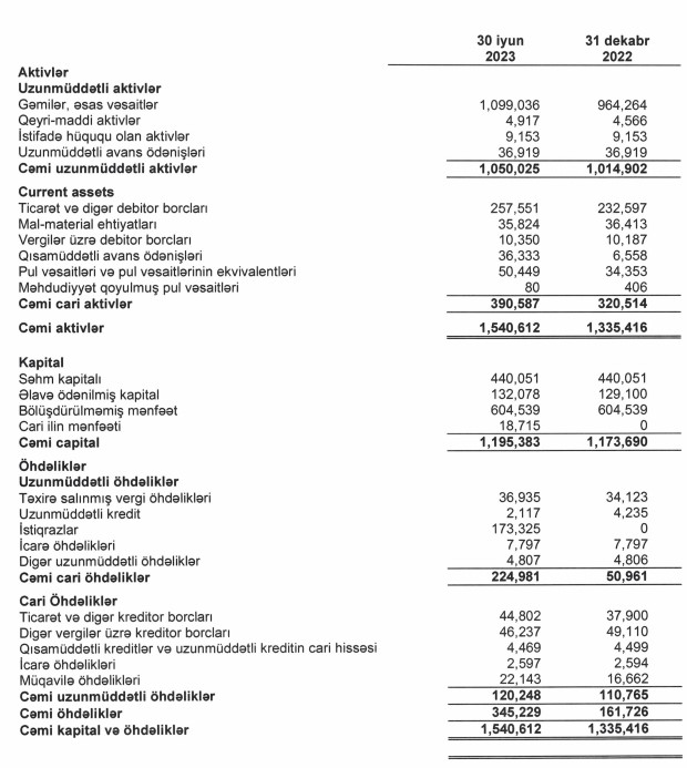 Dövlətə məxsus gəmiçilik şirkəti yarımillik gəlir və xalis mənfəətini açıqladı