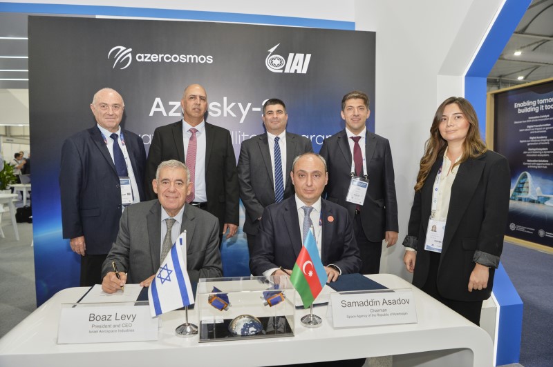 Bakıda keçirilən 74-cü Beynəlxalq Astronavtika Konqresi çərçivəsində Azərkosmos və “Israel Aerospace Industries” (IAI) şirkəti arasında Azərbaycanın yeni müşahidə peyklərinin hazırlanması üzrə əməkdaşlıq müqaviləsi imzalanıb.