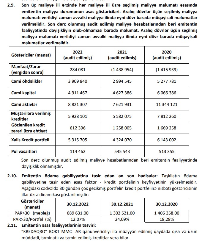 "Kredaqro Bank Omayan Kredit Təşkilatı" MMC hər birinin nominal dəyəri 100 manat olan 20 000 ədəd faizli, təmin edilməmiş, sənədsiz, adlı istiqrazlar buraxır.