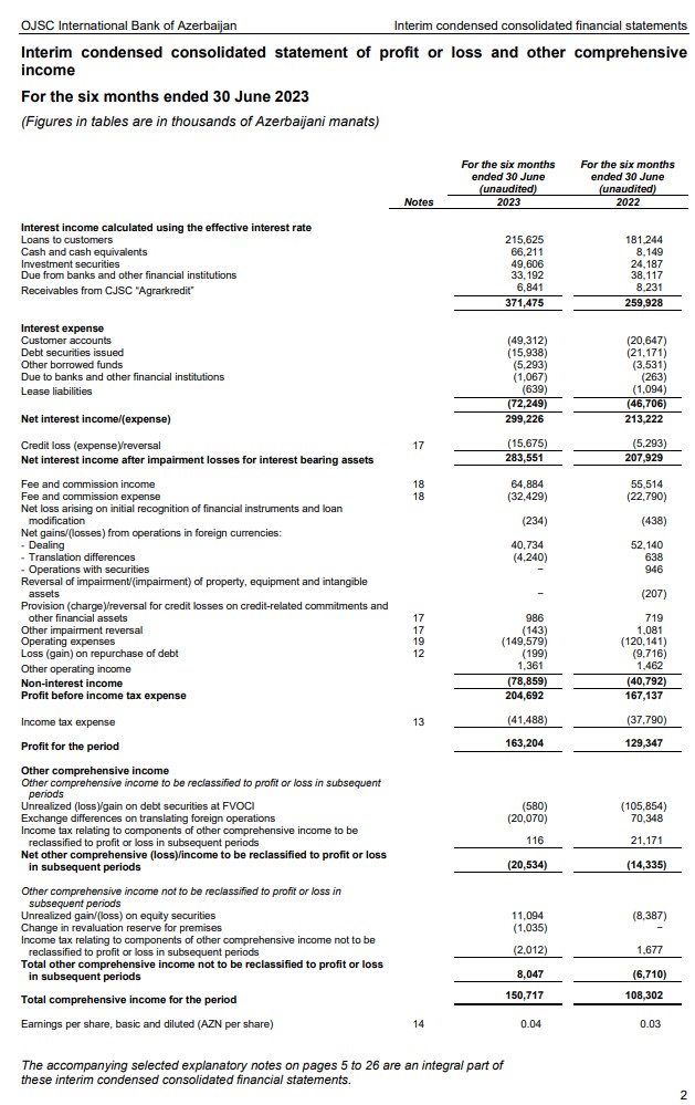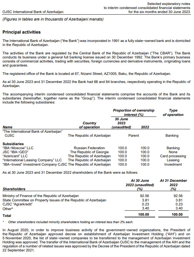 "ABB" ASC (Azərbaycan Beynəlxalq Bankı) 30 iyun 2023-cü il tarixinə olan konsolidə edilmiş maliyyə hesabatlarını açıqlayıb. Konsolidə edilmiş və təhlil olunmuş maliyyə hesabatı "ABB" ASC-nin maliyyə nəticələri ilə bərabər, onun törəmə şirkətlərinin - "ABB-Moskva" bankının, "ABB-GEO" QSC-nin, "Azərikard" MMC-nin, "Beynəlxalq Lizinq Şirkəti" MMC-nin və "ABB-İnvest” QSC-nin (birlikdə Qrup) maliyyə göstəricilərini də əks etdirir.