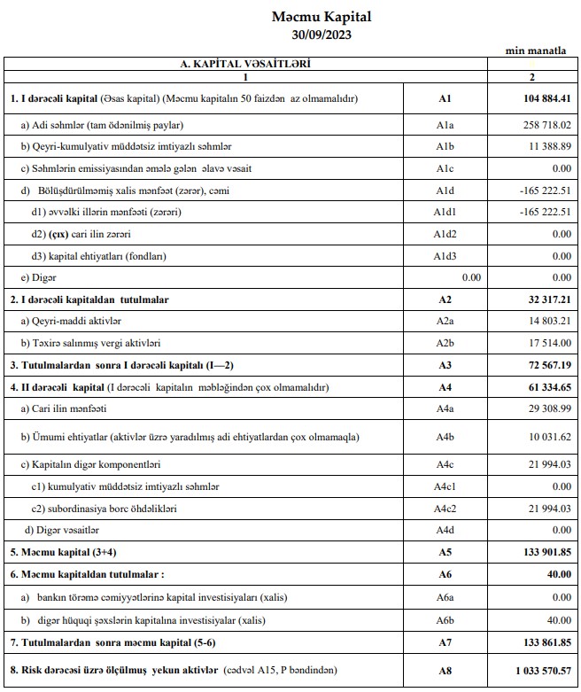 30 Sentyabr 2023-cü il tarixində "AccessBank" 133 milyon 862 min manat məcmukapitala malik olub.