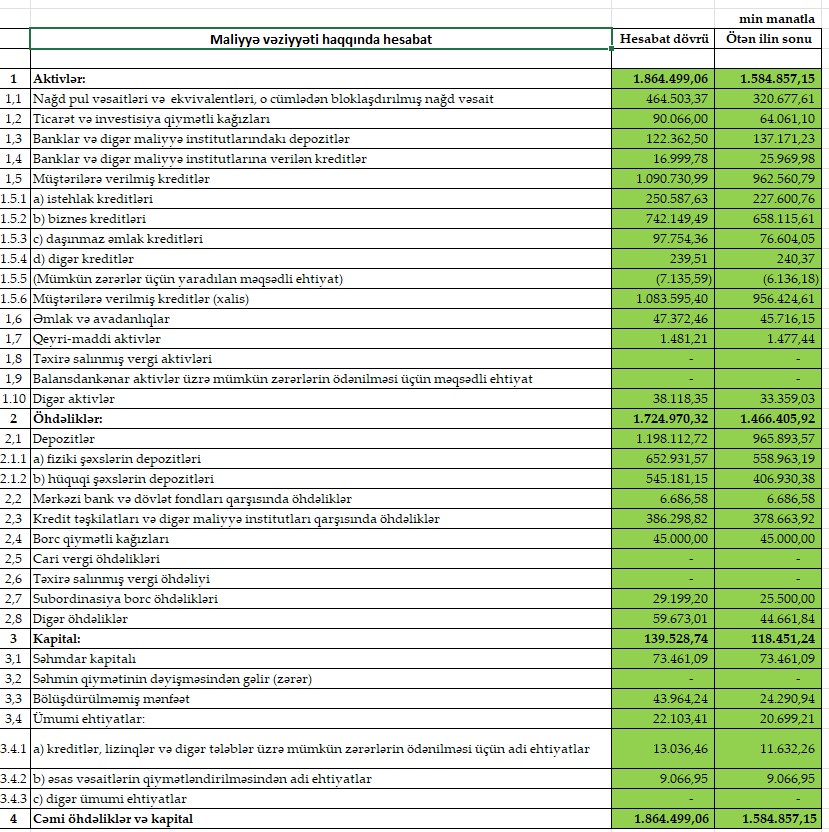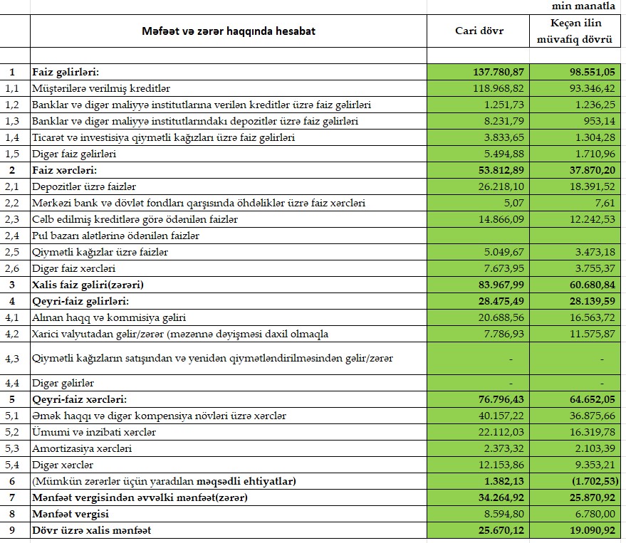 Azərbaycanda 5-ci böyük bankın da maliyyə vəziyyəti məlum oldu