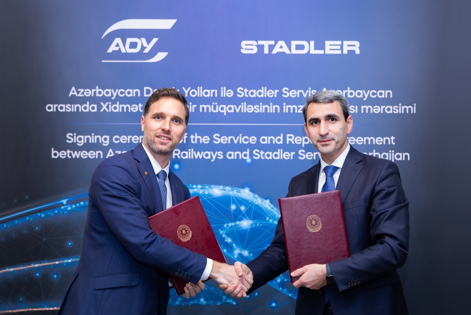 ADY “Stadler” şirkəti ilə Regional Servis Mərkəzinin yaradılmasına dair müqavilə imzaladıBu gün “Azərbaycan Dəmir Yolları” QSC (ADY) və “Stadler Rail Group” şirkəti arasında dəmir yolu nəqliyyatı vasitələrinin təmiri, texniki qulluq və konsultasiya üzrə xidmətlərin göstərilməsinə dair müqavilə imzalanıb.