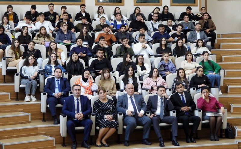 Sonda Azərbaycan Respublikası Mərkəzi Bankının Maliyyə savadlılığı şöbəsinin rəisi Xumar Hüseynova Mərkəzi Bank tərəfindən "Maliyyə savadlılığı" layihəsi çərçivəsində hazırlanmış resurslar barədə auditoriyanı məlumatlandırmış və tələbələri maraqlandıran sualları cavablandırmışdır.