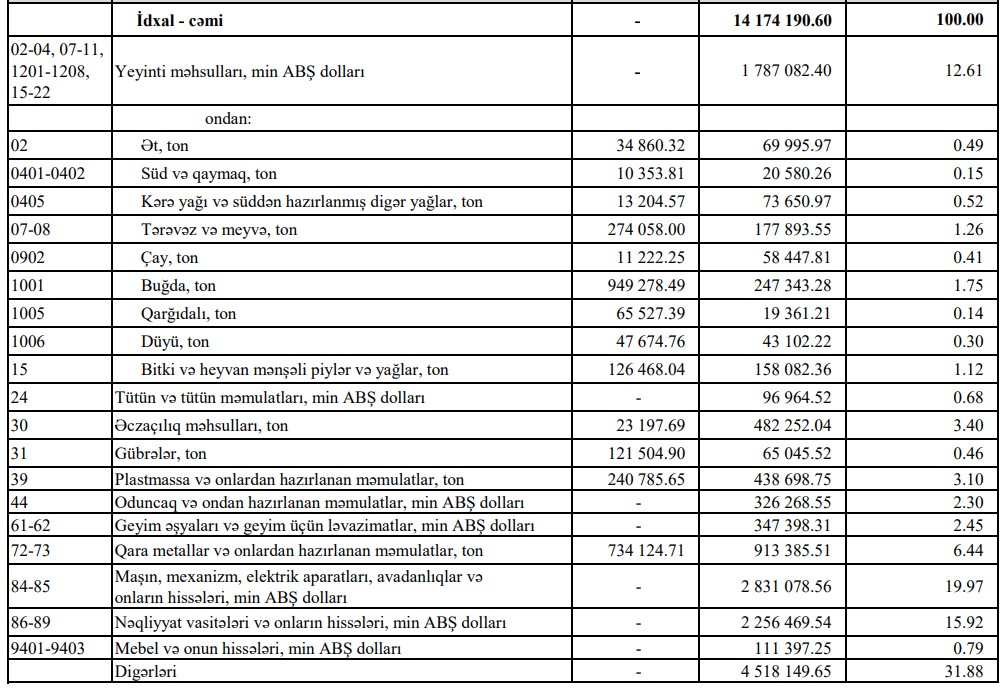 Azərbaycanın ən çox ixrac və idxal etdiyi mallar - SİYAHI